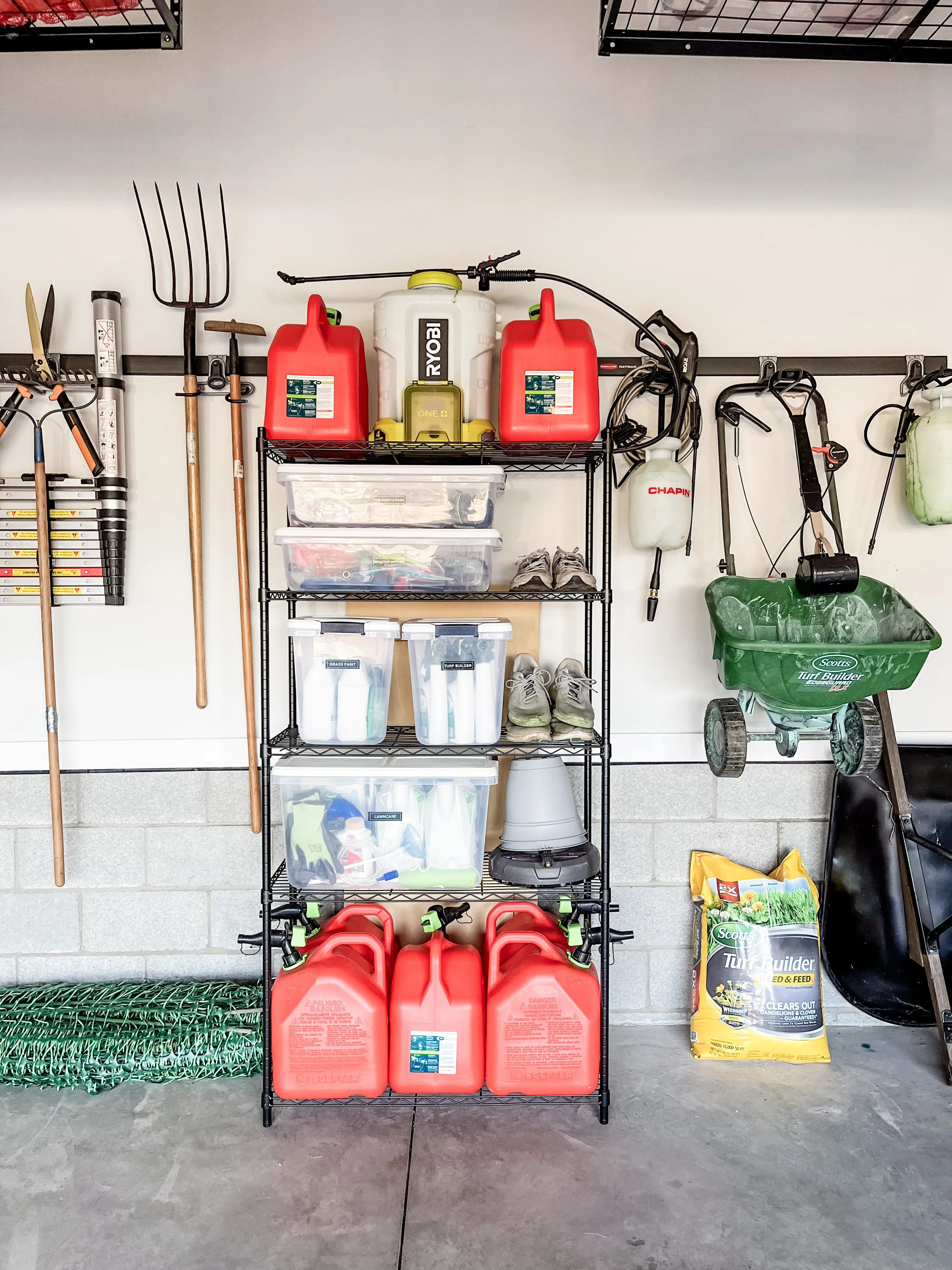 Shelving units, pegboards and FastTrack systems are all great for this purpose!
